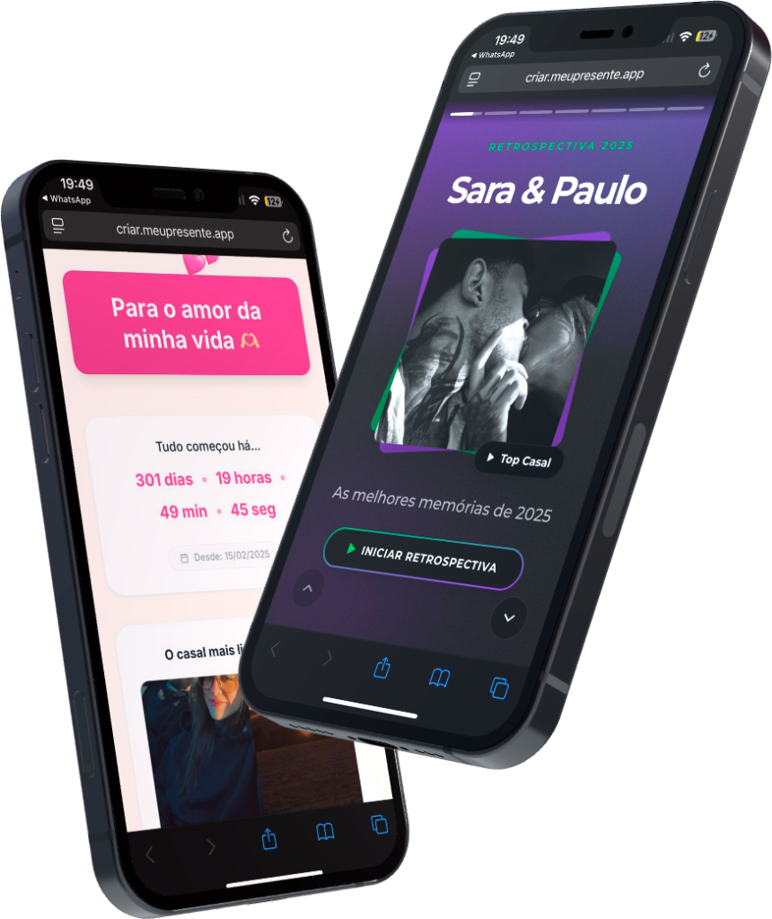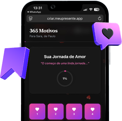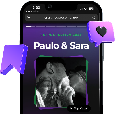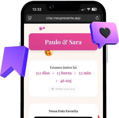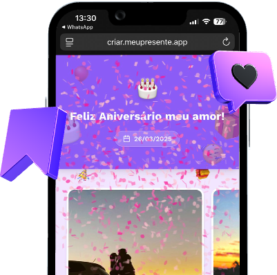 É muito fácil criar o seu! Cada produto tem um painel de personalização onde você só vai preenchendo os textos, fazendo upload das suas fotos, escolhendo cores, fontes, emojis, música… e o melhor: você vê em tempo real como tá ficando. Quando você publicar seu presente, tudo acontece automaticamente e você só precisa baixar o QR Code ou salvar o link.